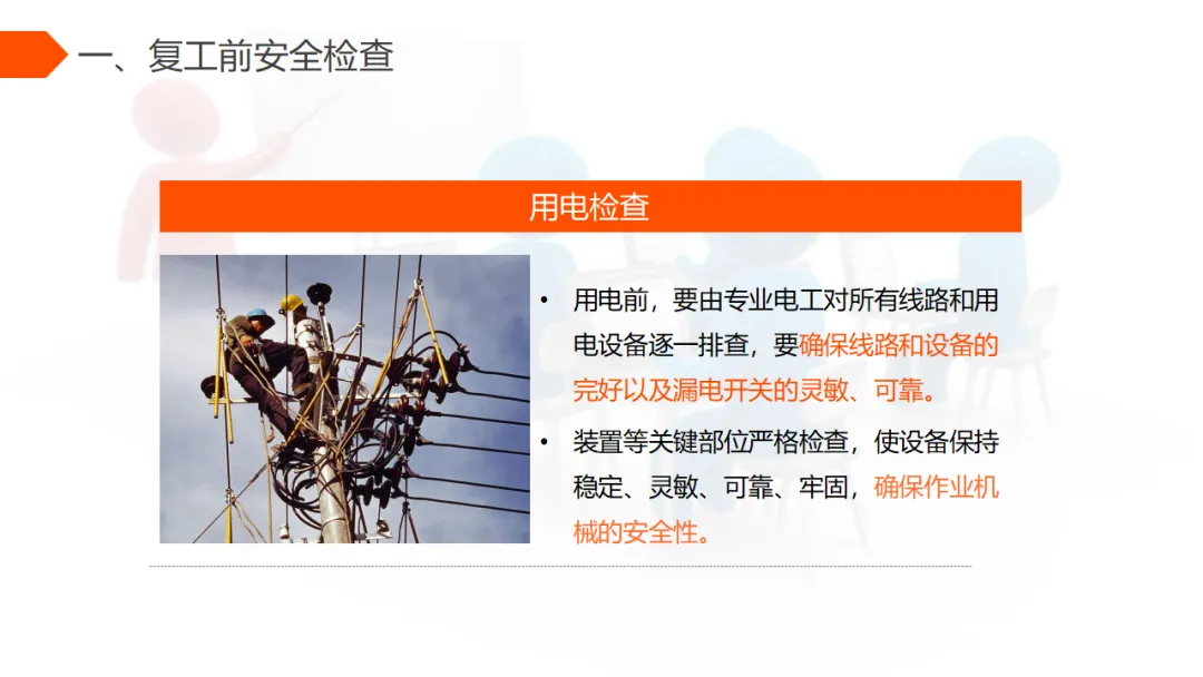 在正式复工前,必须对全厂设备设施、作业环境、电气线路等进行全面排查,确认安全后方可复工。