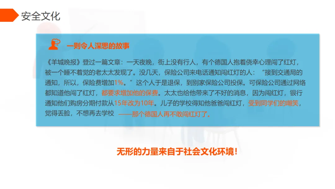 请大家闭上眼睛想一想,当你每天出门上班时,家人对你说的最多的一句话是什么?是不是"注意安全"?你的父母、你的配偶、你的孩子,他们不需要你大富大贵,不需要你位高权重,他们最需要的是你平平安安地回家。
