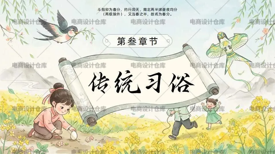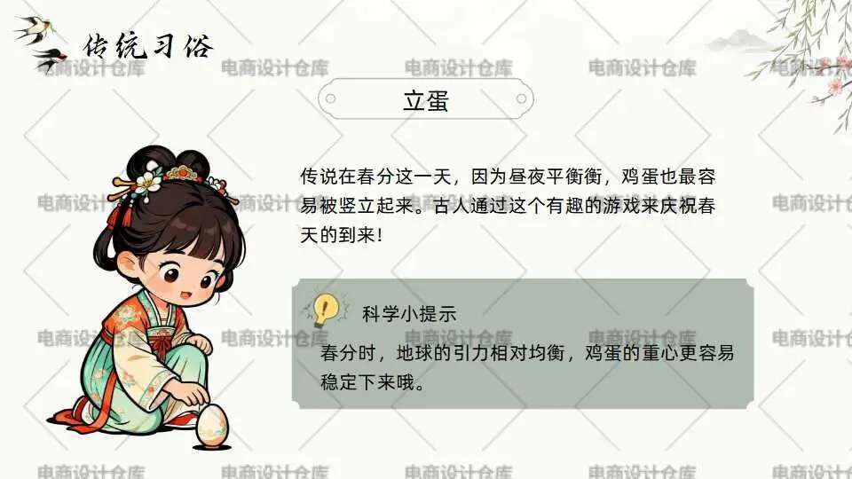 传统节气介绍原创静态PPT设计/【春分】到,蛋儿俏:除了竖蛋,这些春分习俗你知道几个?