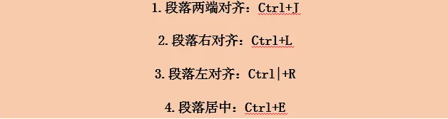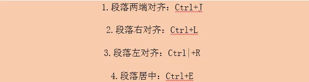 (1)段落两端对齐:Ctrl+J (2)段落右对齐:Ctrl+L