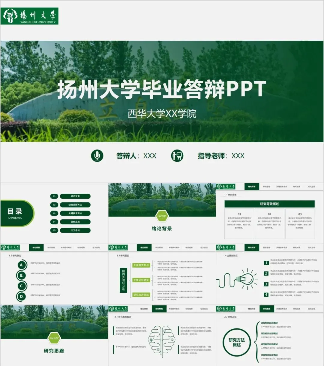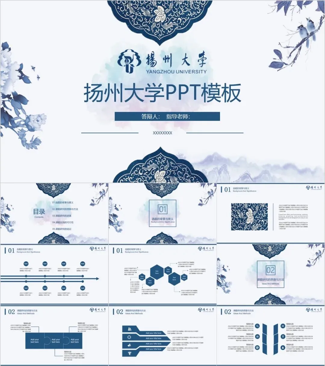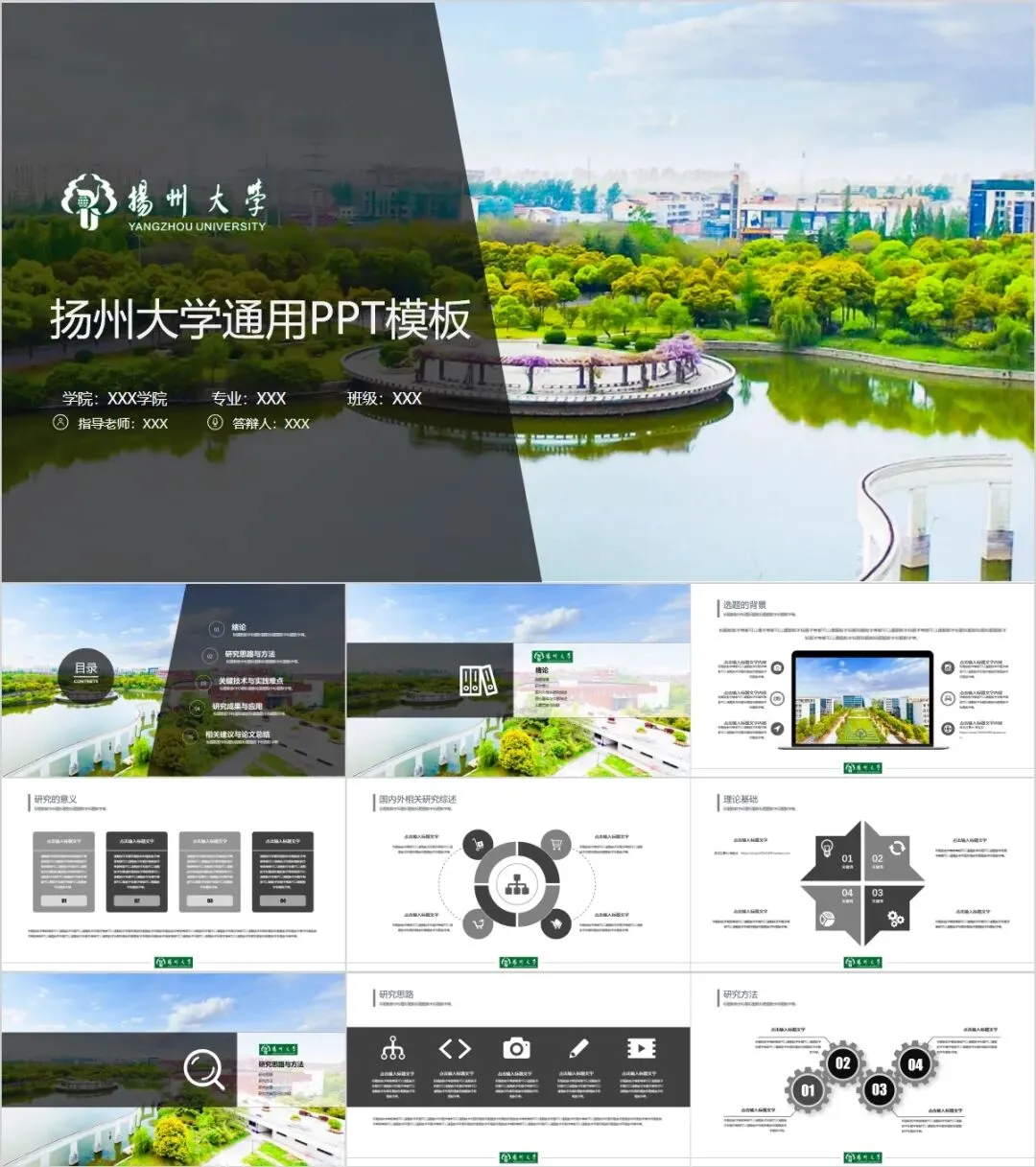 “扬州大学”专属PPT模板来啦,本硕博汇报答辩必备!
