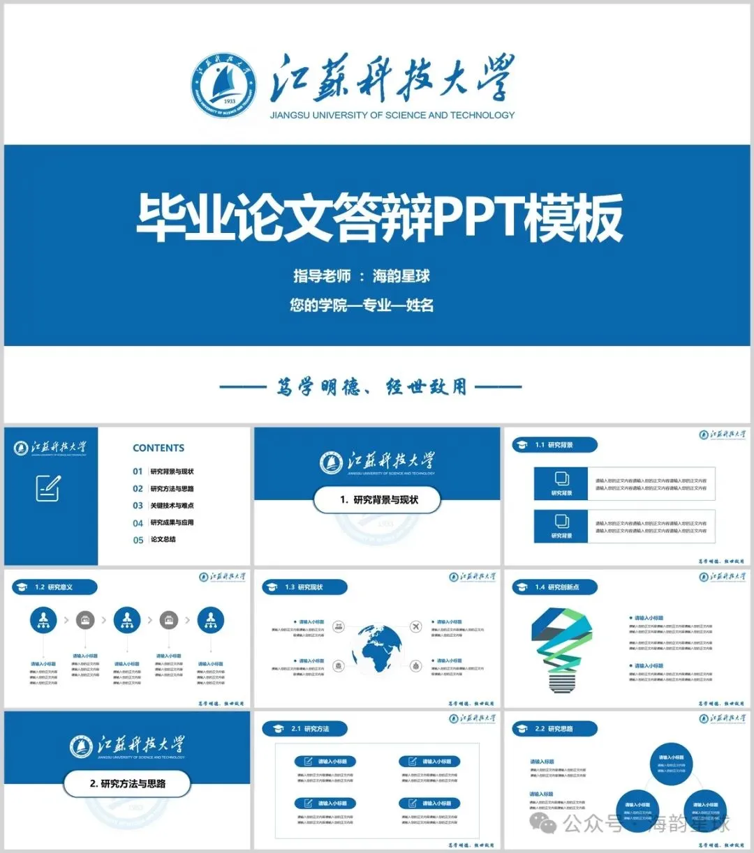 “江苏科技大学”专属PPT模板来啦,本硕博汇报答辩必备!
