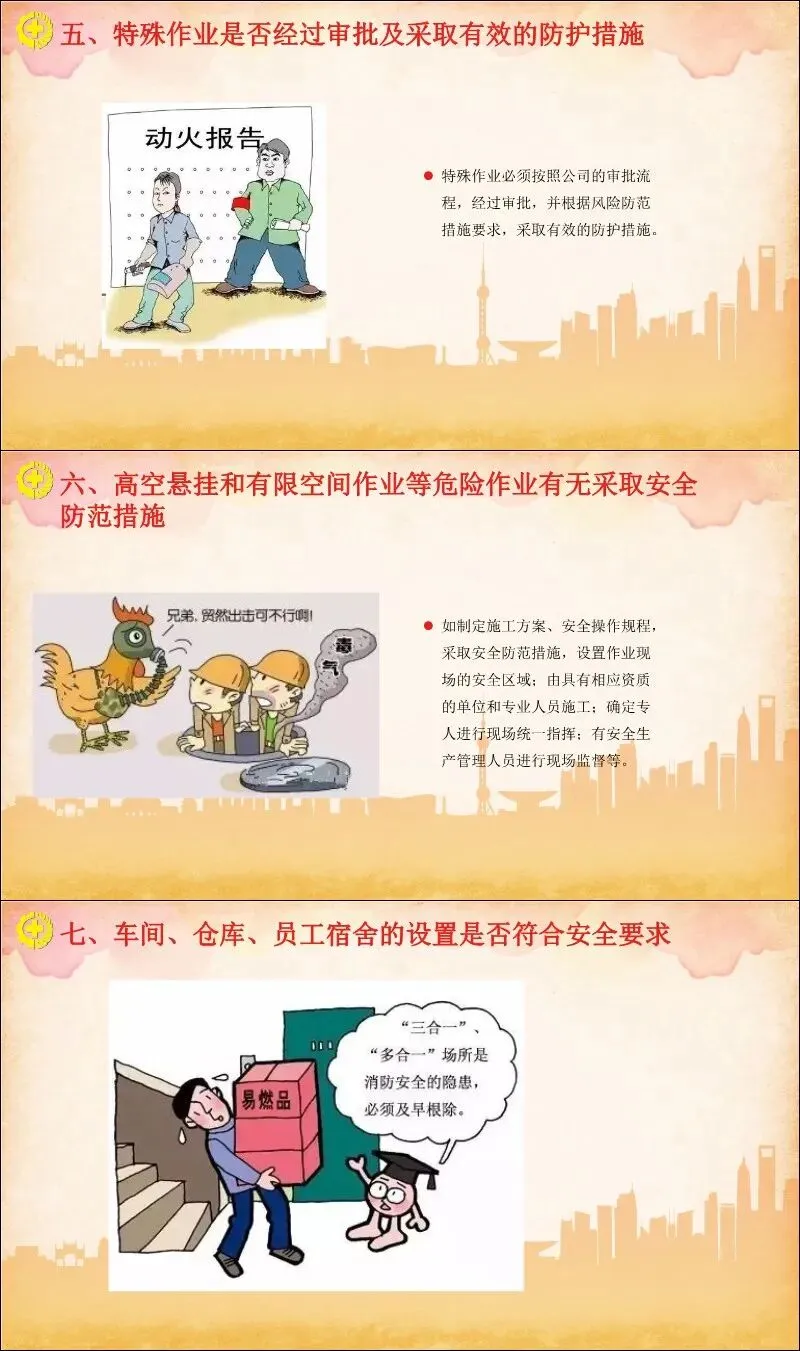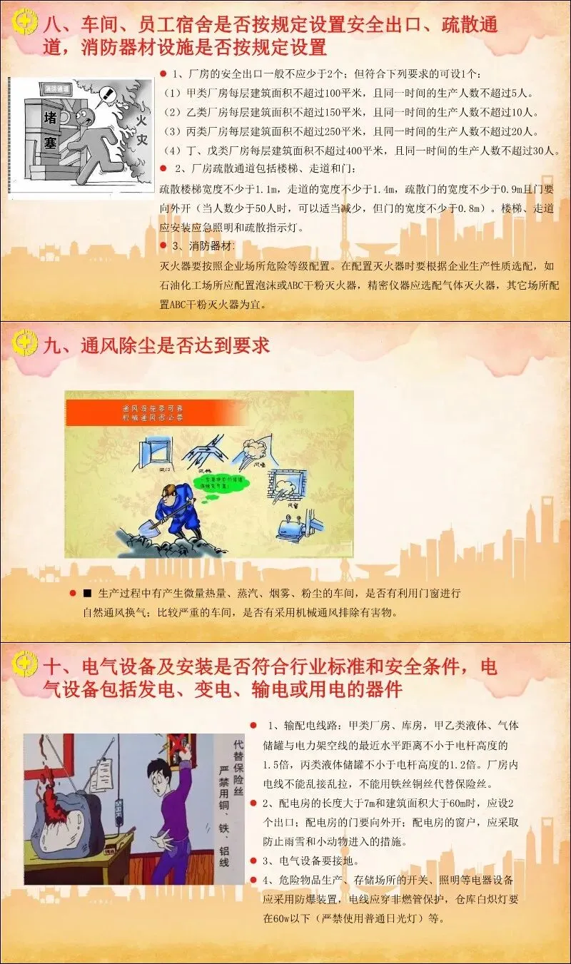 场所设置:车间、仓库、宿舍设置是否符合安全要求。