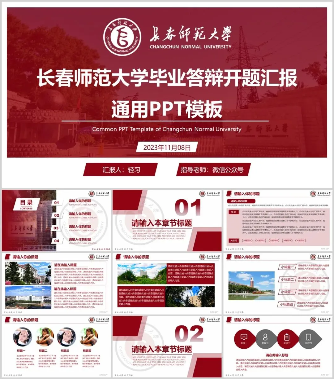 “长春师范大学”专属PPT模板来啦,本硕博汇报答辩必备!
