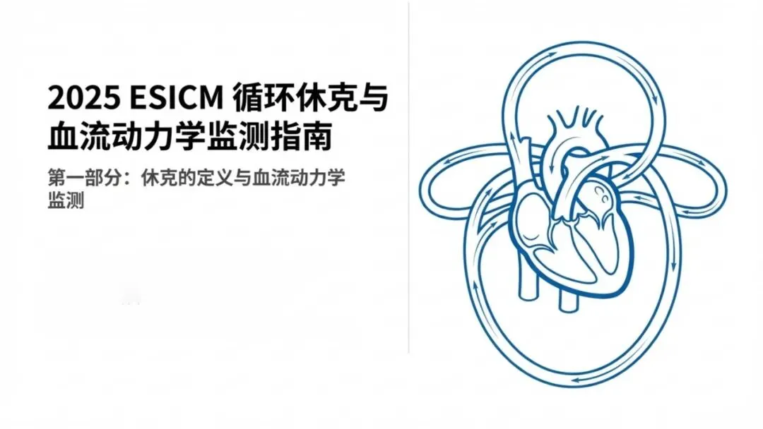 欧洲重症医学会指南针对休克患者的休克定义、液体治疗、血流动力学监测及超声心动图检查,提出了50条基于循证医学和专家共识的建议。2025年指南对2014年制定的建议进行了更新和扩充。根据指南内容做了四个PPT,分布是休克的定义、液体治疗、血流动学监测、超声心动图监测,本文分享第一部分:休克的定义,涉及内容包括定义、临床特征、乳酸、连续评估、皮肤灌注等推荐意见。需要课件可加微信wxkukakukal07获取。