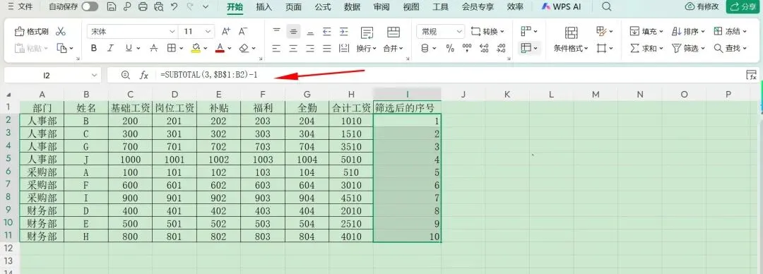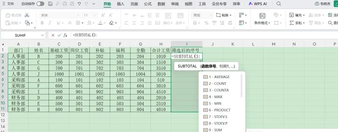 还有,为什么要-1 ?因为SUBTOTAL 会把「标题行/表头」也算进去 1 个,所以要减掉多算的那 1 个,所以一定要 -1,不然序号会从 2 开始。