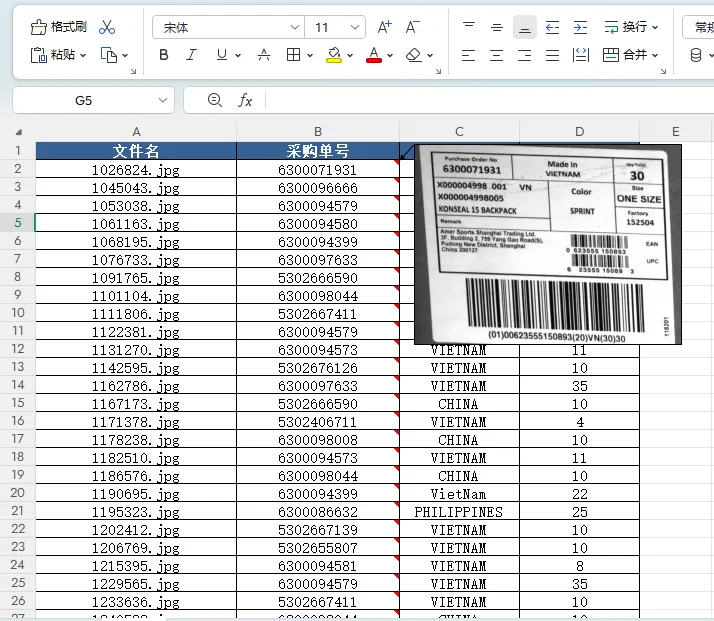 import tkinter as tkfrom tkinter import ttkclass ExcelImageMatcherPro: def __init__(self, root): self.root = root self.root.title("Excel批量添加图片批注(欢迎关注微信公众号:码海听潮)") self.root.geometry("900x650") self.root.resizable(False, False) # 设置中文字体 self.font_family = ("SimHei", "WenQuanYi Micro Hei", "Heiti TC") # 创建UI self.create_widgets() def create_widgets(self): # 主框架 - 使用grid作为根布局 main_frame = tk.Frame(self.root, bg="#f0f0f0") main_frame.pack(fill=tk.BOTH, expand=True, padx=10, pady=10) # 配置grid行列权重 main_frame.grid_rowconfigure(1, weight=1) # 中间行可扩展 main_frame.grid_columnconfigure(0, weight=1) # ==================== 顶部控制区域 ==================== top_frame = tk.Frame(main_frame, bg="#f0f0f0", height=210) top_frame.grid(row=0, column=0, sticky="ew", pady=(0, 10)) top_frame.grid_propagate(False) # 第一行控制 - 图片文件夹选择 folder_frame = ttk.LabelFrame(top_frame, text=" 图片文件夹 ", padding=(5, 5, 5, 5)) folder_frame.pack(fill=tk.X, pady=(5, 0)) folder_label = tk.Label(folder_frame, text="图片文件夹:", bg="#f0f0f0", font=(self.font_family[0], 11)) folder_label.pack(side=tk.LEFT, padx=(0, 5)) self.folder_path_var = tk.StringVar() folder_entry = tk.Entry(folder_frame, textvariable=self.folder_path_var, font=(self.font_family[0], 10), width=40) folder_entry.pack(side=tk.LEFT, fill=tk.X, expand=True, padx=(0, 5)) browse_folder_btn = tk.Button(folder_frame, text="浏览", command=self.select_folder, font=(self.font_family[0], 10), cursor="hand2", padx=10) browse_folder_btn.pack(side=tk.LEFT) load_btn = tk.Button(folder_frame, text="加载图片", command=self.load_images_from_entry, font=(self.font_family[0], 10), bg="#4CAF50", fg="white", cursor="hand2", padx=10) load_btn.pack(side=tk.RIGHT, padx=(5, 0)) # 第二行控制 - 模式选择和参数设置(紧凑布局) control_row2 = ttk.LabelFrame(top_frame, text=" 匹配设置 ", padding=(5, 3, 5, 3)) control_row2.pack(fill=tk.X, pady=(5, 0)) settings_container = tk.Frame(control_row2, bg="#f0f0f0") settings_container.pack(fill=tk.X, padx=3, pady=3) # 模式选择 mode_frame = tk.Frame(settings_container, bg="#f0f0f0") mode_frame.pack(side=tk.LEFT, padx=(0, 8)) mode_label = tk.Label(mode_frame, text="匹配模式:", font=(self.font_family[0], 11)) mode_label.pack(side=tk.LEFT, padx=(0, 5)) self.mode_var = tk.StringVar(value="列匹配模式") mode_combo = ttk.Combobox(mode_frame, textvariable=self.mode_var, values=["列匹配模式", "行匹配模式"], width=12, state="readonly") mode_combo.pack(side=tk.LEFT) mode_combo.bind("<<ComboboxSelected>>", self.on_mode_change) # 参数区域 - 紧凑排列 params_frame = tk.Frame(settings_container, bg="#f0f0f0") params_frame.pack(side=tk.LEFT, fill=tk.X, expand=True) # ========== 列模式参数 ========== self.col_param_frame = tk.Frame(params_frame, bg="#f0f0f0") # 匹配列 col_match_frame = tk.Frame(self.col_param_frame, bg="#f0f0f0") col_match_frame.pack(side=tk.LEFT, padx=2) ttk.Label(col_match_frame, text="匹配列:", font=(self.font_family[0], 10))\ .pack(side=tk.LEFT, padx=0, pady=0) self.col_match_entry = ttk.Entry(col_match_frame, width=4) self.col_match_entry.pack(side=tk.LEFT, padx=1) self.col_match_entry.insert(0, "A") # 插入列 col_insert_frame = tk.Frame(self.col_param_frame, bg="#f0f0f0") col_insert_frame.pack(side=tk.LEFT, padx=2) ttk.Label(col_insert_frame, text="插入列:", font=(self.font_family[0], 10))\ .pack(side=tk.LEFT, padx=0, pady=0) self.col_insert_entry = ttk.Entry(col_insert_frame, width=4) self.col_insert_entry.pack(side=tk.LEFT, padx=1) self.col_insert_entry.insert(0, "B") # 边距 col_margin_frame = tk.Frame(self.col_param_frame, bg="#f0f0f0") col_margin_frame.pack(side=tk.LEFT, padx=2) ttk.Label(col_margin_frame, text="边距:", font=(self.font_family[0], 10))\ .pack(side=tk.LEFT, padx=0, pady=0) self.col_margin_entry = ttk.Entry(col_margin_frame, width=4) self.col_margin_entry.pack(side=tk.LEFT, padx=1) self.col_margin_entry.insert(0, "2") # 批注大小设置 comment_size_frame = tk.Frame(self.col_param_frame, bg="#f0f0f0") comment_size_frame.pack(side=tk.LEFT, padx=5) ttk.Label(comment_size_frame, text="批注宽:", font=(self.font_family[0], 10))\ .pack(side=tk.LEFT, padx=0, pady=0) self.comment_width_entry = ttk.Entry(comment_size_frame, width=4) self.comment_width_entry.pack(side=tk.LEFT, padx=1) self.comment_width_entry.insert(0, "200") ttk.Label(comment_size_frame, text="高:", font=(self.font_family[0], 10))\ .pack(side=tk.LEFT, padx=0, pady=0) self.comment_height_entry = ttk.Entry(comment_size_frame, width=4) self.comment_height_entry.pack(side=tk.LEFT, padx=1) self.comment_height_entry.insert(0, "150") # ========== 行模式参数 ========== self.row_param_frame = tk.Frame(params_frame, bg="#f0f0f0") # 匹配行 row_match_frame = tk.Frame(self.row_param_frame, bg="#f0f0f0") row_match_frame.pack(side=tk.LEFT, padx=2) ttk.Label(row_match_frame, text="匹配行:", font=(self.font_family[0], 10))\ .pack(side=tk.LEFT, padx=0, pady=0) self.row_match_entry = ttk.Entry(row_match_frame, width=4) self.row_match_entry.pack(side=tk.LEFT, padx=1) self.row_match_entry.insert(0, "1") # 插入行 row_insert_frame = tk.Frame(self.row_param_frame, bg="#f0f0f0") row_insert_frame.pack(side=tk.LEFT, padx=2) ttk.Label(row_insert_frame, text="插入行:", font=(self.font_family[0], 10))\ .pack(side=tk.LEFT, padx=0, pady=0) self.row_insert_entry = ttk.Entry(row_insert_frame, width=4) self.row_insert_entry.pack(side=tk.LEFT, padx=1) self.row_insert_entry.insert(0, "2") # 边距 row_margin_frame = tk.Frame(self.row_param_frame, bg="#f0f0f0") row_margin_frame.pack(side=tk.LEFT, padx=2) ttk.Label(row_margin_frame, text="边距:", font=(self.font_family[0], 10))\ .pack(side=tk.LEFT, padx=0, pady=0) self.row_margin_entry = ttk.Entry(row_margin_frame, width=4) self.row_margin_entry.pack(side=tk.LEFT, padx=1) self.row_margin_entry.insert(0, "2") # 批注大