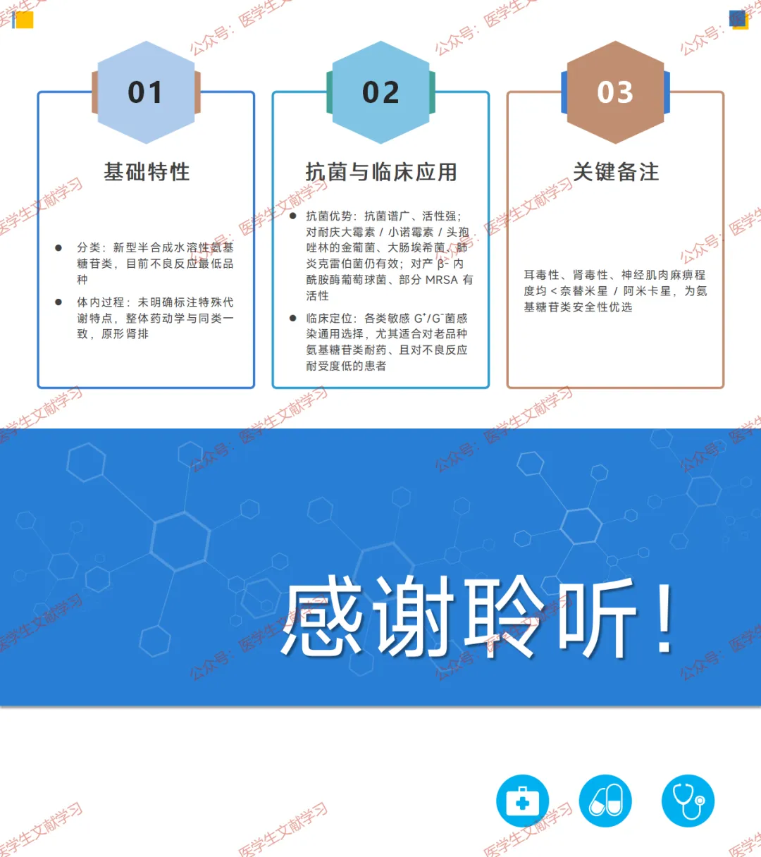 分类:天然来源(链霉素、庆大霉素、妥布霉素等)、半合成品(阿米卡星、奈替米星等)、新一代(普拉佐米星,抗耐药性更优)。
