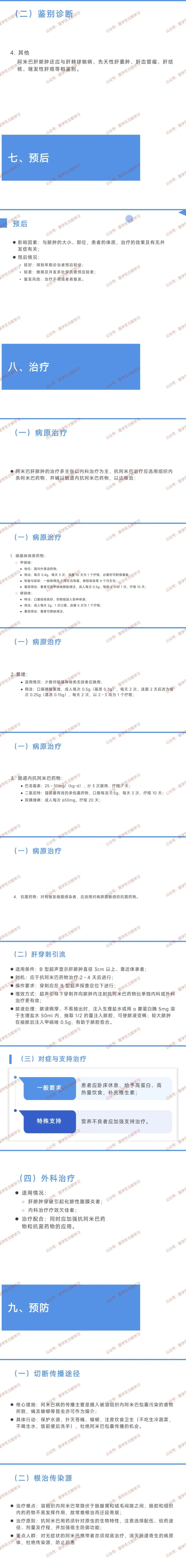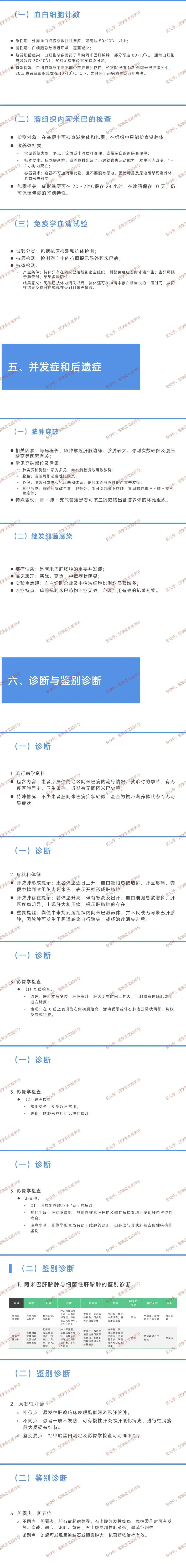辅助检查:超声 / CT 提示肝内液性病灶,血清学检查阳性,脓液或粪便找到滋养体。