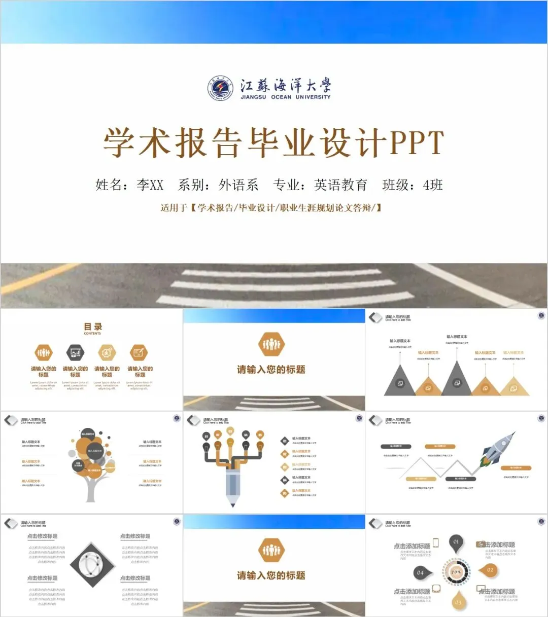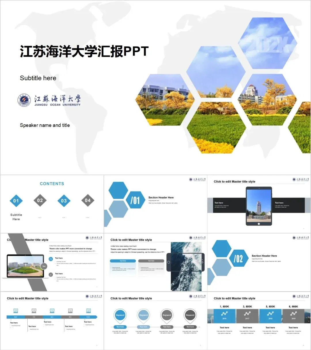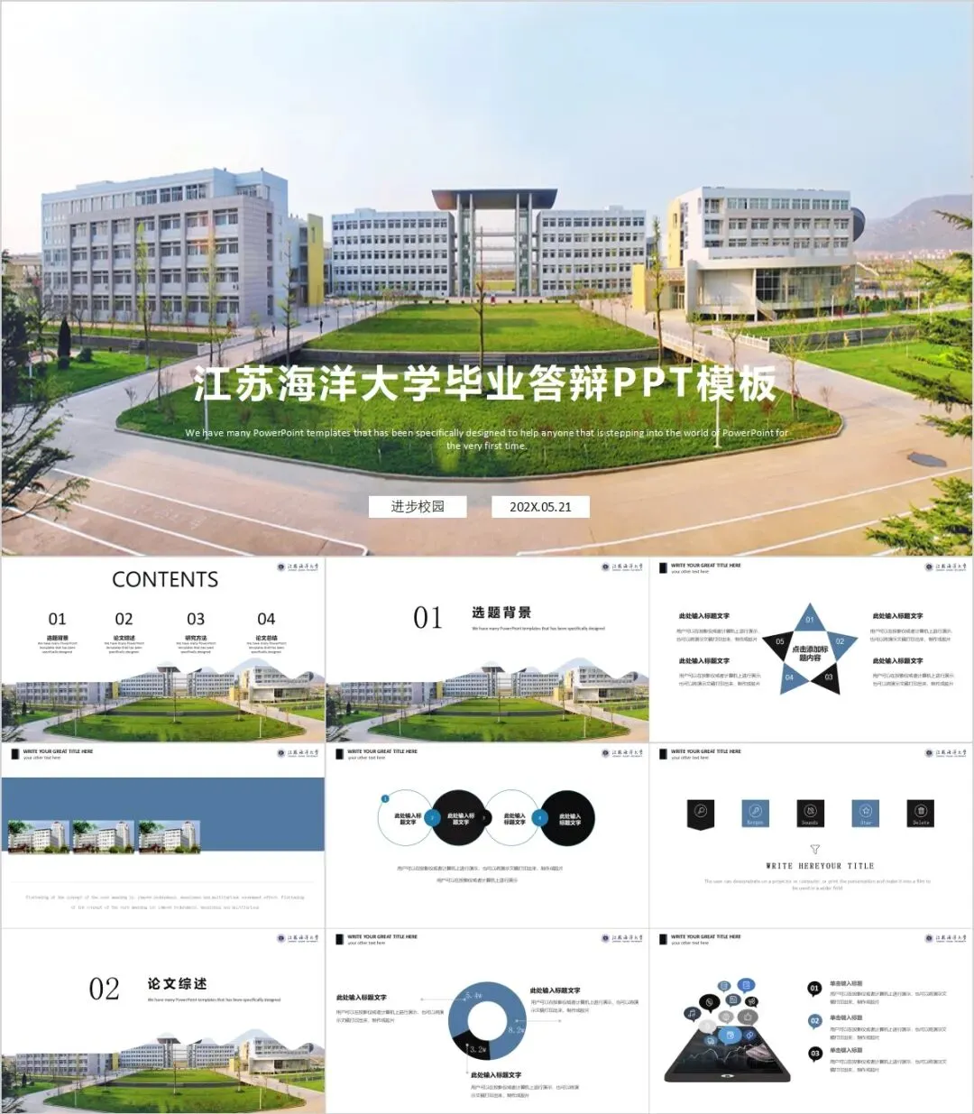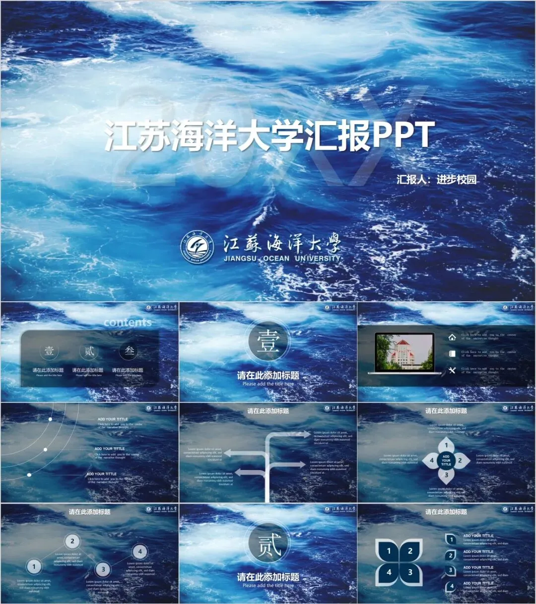 “江苏海洋大学”专属PPT模板来啦,本硕博汇报答辩必备!