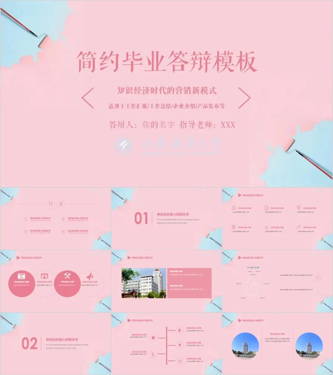 A:一般专属PPT≥10套,通用PPT≥100套;专属PPT适合在校生答辩使用,购买后PPT模板会补充,同时内置免抠高校logo,方便大家使用。A:资源链接获取后,下载即可正常使用,模板内文字是可以自行修改的,大家可以按照个人需求进行diy。A:当然,我们会根据后台的留言进行PPT制作,尽快通过微信公众号分享给到大家,如果你有独特的PPT模板,也可以分享给我们哦。其他还未推送学校的同学也可以给我们留言