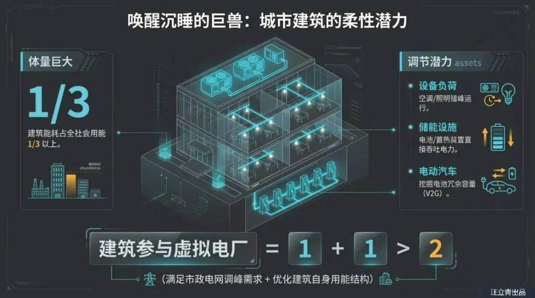 在“双碳”目标与极端天气频发的双重夹击下,城市电网正面临前所未有的压力,而占据全社会用能1/3的建筑,正从单纯的“电力吞金兽”转变为电网的“超级充电宝”。这份报告揭示了一种基于建筑负荷聚合的虚拟电厂(VPP)新模式,它不再依赖昂贵的物理电厂建设,而是通过数字化手段将写字楼里的空调、储能和电动汽车等分散资源“打包”,构建出一座可调、可控的“隐形电厂”。这种模式彻底颠覆了传统用能逻辑,实现了“荷随源动”的柔性互动,让每一栋建筑都能在保障舒适度的前提下,成为平抑电网波动、消纳绿色能源的关键节点。