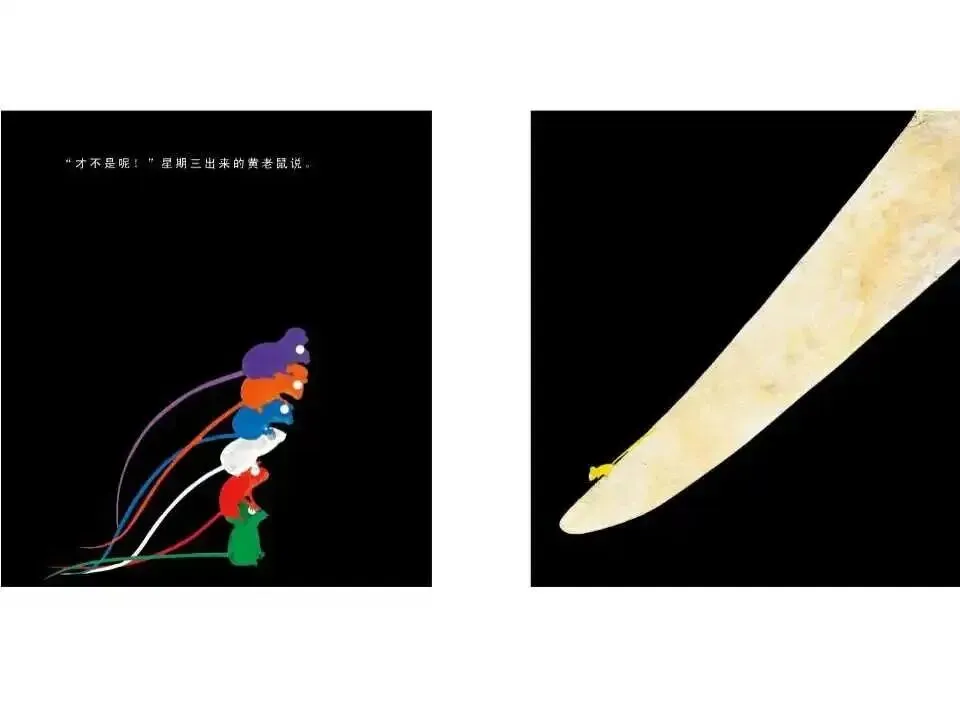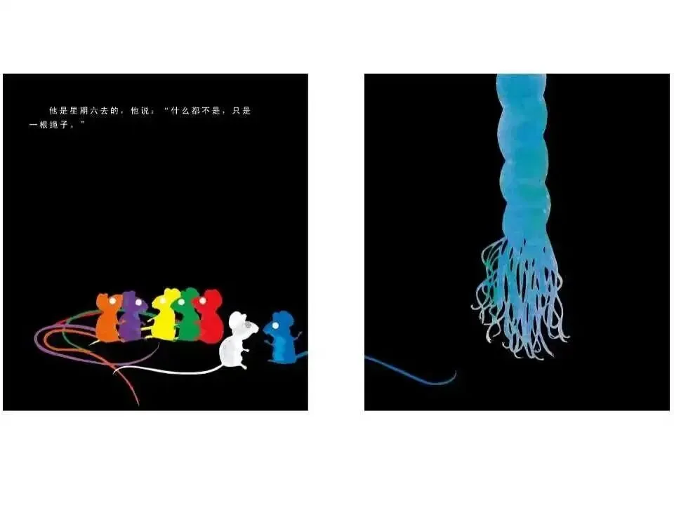 第六个出来的是蓝老鼠。他是星期六去的,他说:“什么都不是,只是一根绳子。”其他老鼠都不同意,他们开始争吵起来。