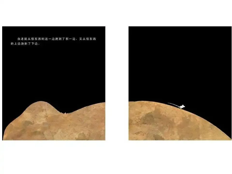 白老鼠从怪东西的这一边跑到那一边,又从怪东西的上边跑到了下边。