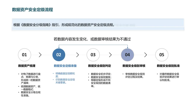 3. 标准流程:数据资产盘点→明确定级标准→初步定级→交叉复核→最终审批。