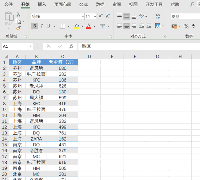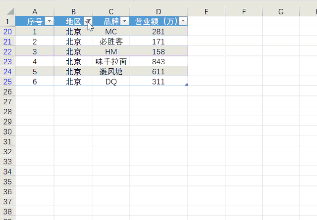 普通的筛选,需要取消勾选,再勾选下一个地区。