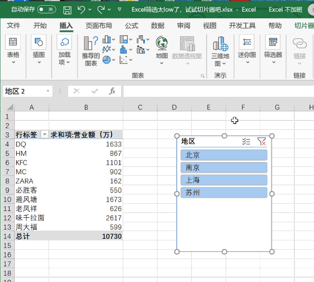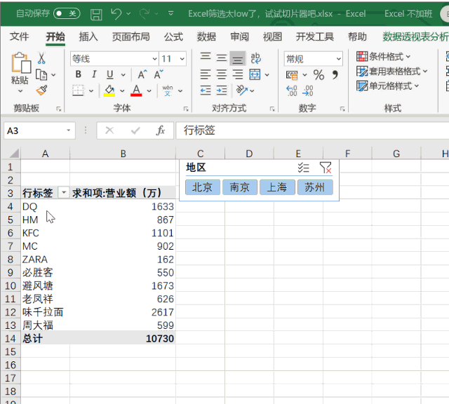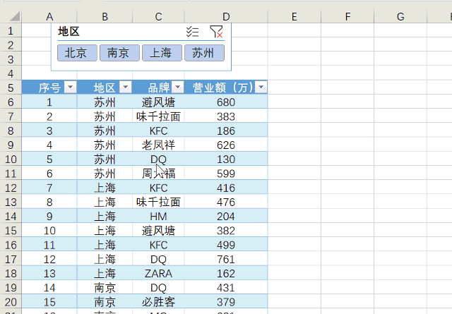 切片器筛选地区那简直就太方便了,鼠标点一下,就自动筛选。