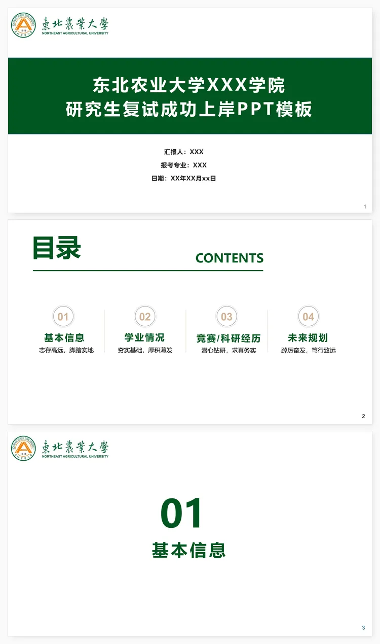 私信回复【东北农业大学】即可获取PPT模板链接
