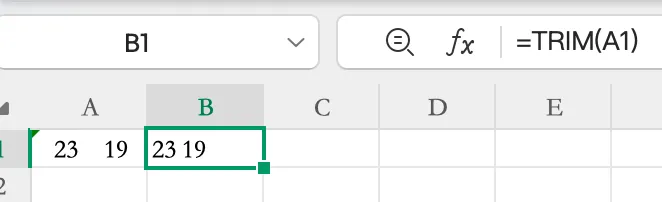 从系统导出的数据常带有隐藏空格,用 TRIM 函数轻松解决: