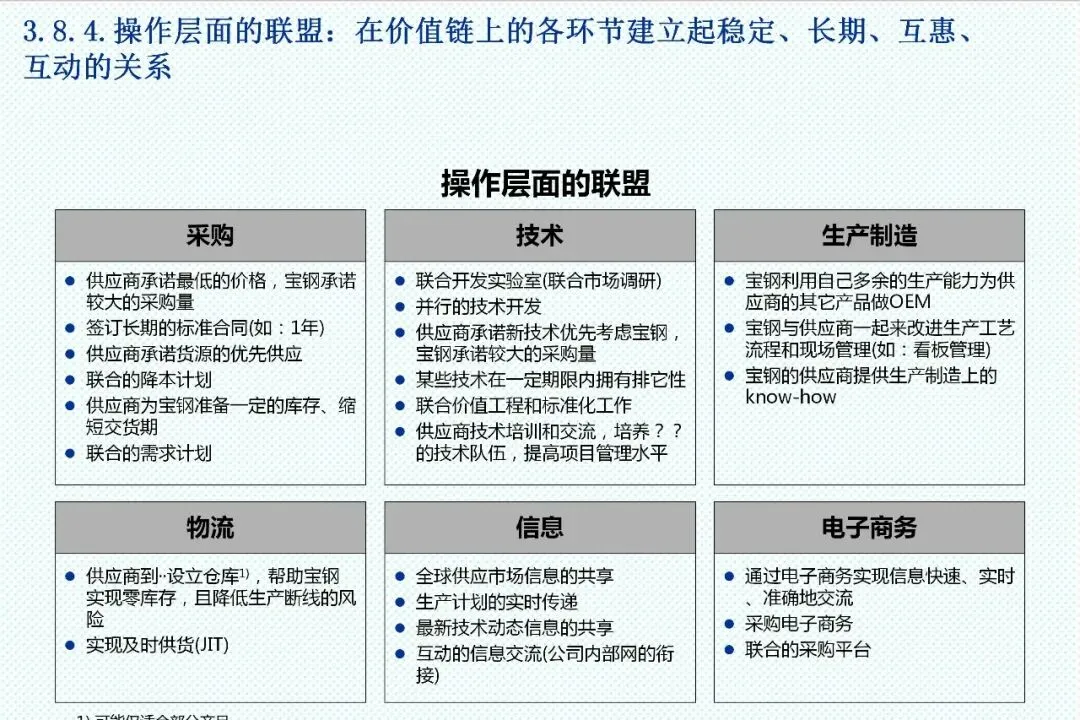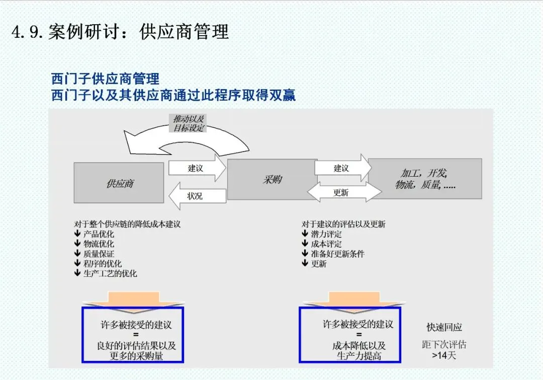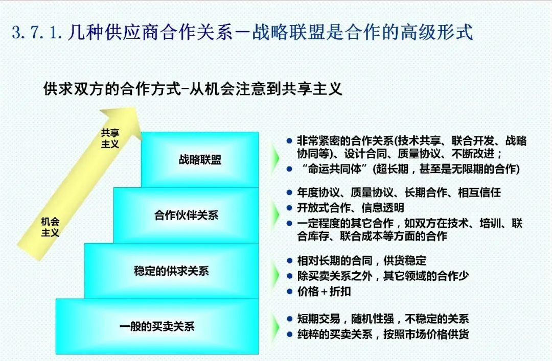 供应商选择与管理体系同样需要系统化重构。从供应源决策、市场分析到供应商筛选,企业应建立多维度评估机制,涵盖公司总体情况、生产制造、研发能力、质量管理、物流交货等八大因素。对于战略供应商,应致力于发展双赢伙伴关系,基于开放原则与长期视野,开展全方位合作。