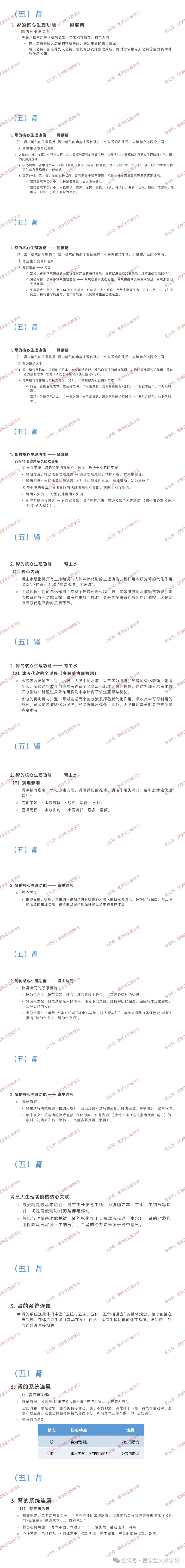 - 主气司呼吸:主呼吸之气(体内外气体交换)与一身之气(参与宗气生成、调节气机)。