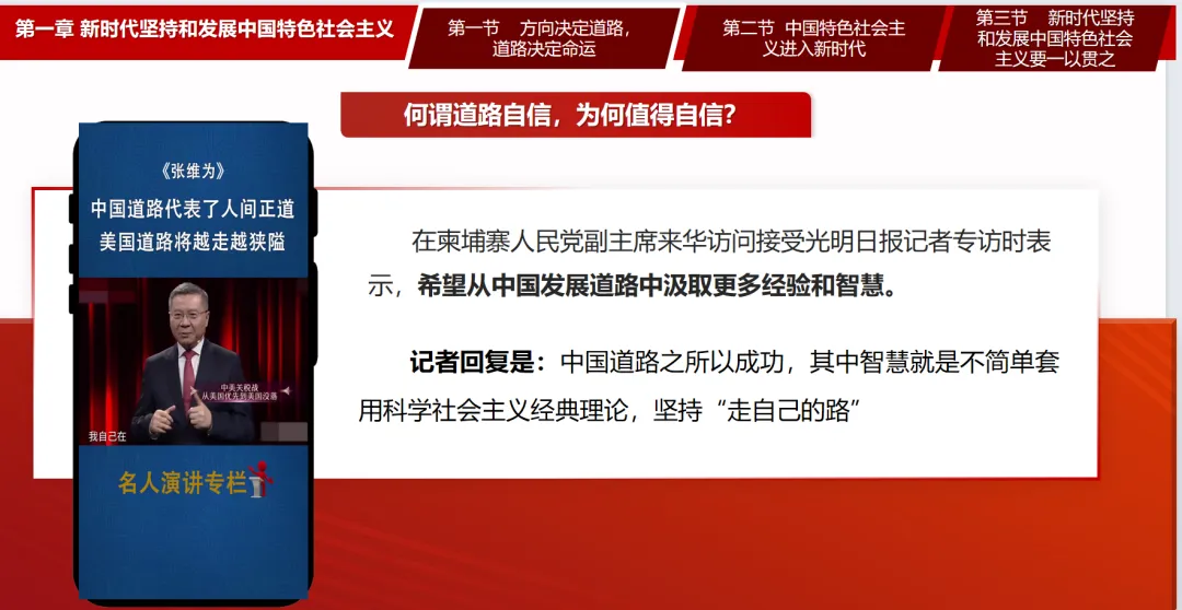 P31中国道路之所以成功,其中智慧就是不简单套用科学社会主义经典理论,坚持“走自己的路”。
