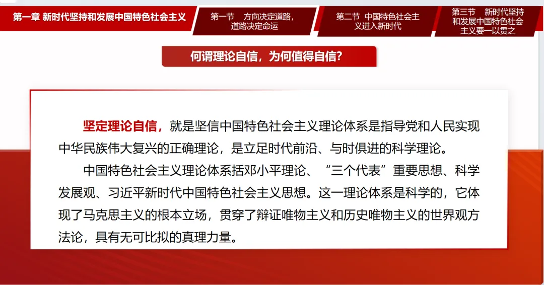 P32什么是理论自信?课本上说道,坚定理论自信,就是坚持中国特色社会主义理论体系是指导党和人民实现中华民族伟大复兴的正确理论,是立足时代前沿、与时俱进的科学理论。同学们,我们可以纵观全世界,可以发现没有哪一个政党像中国共产党这样如此重视理论创新,在实践的基础之上创造出如此丰富的科学理论。在这里,想问问各位同学中国特色社会主义理论体系包括哪些方面?......