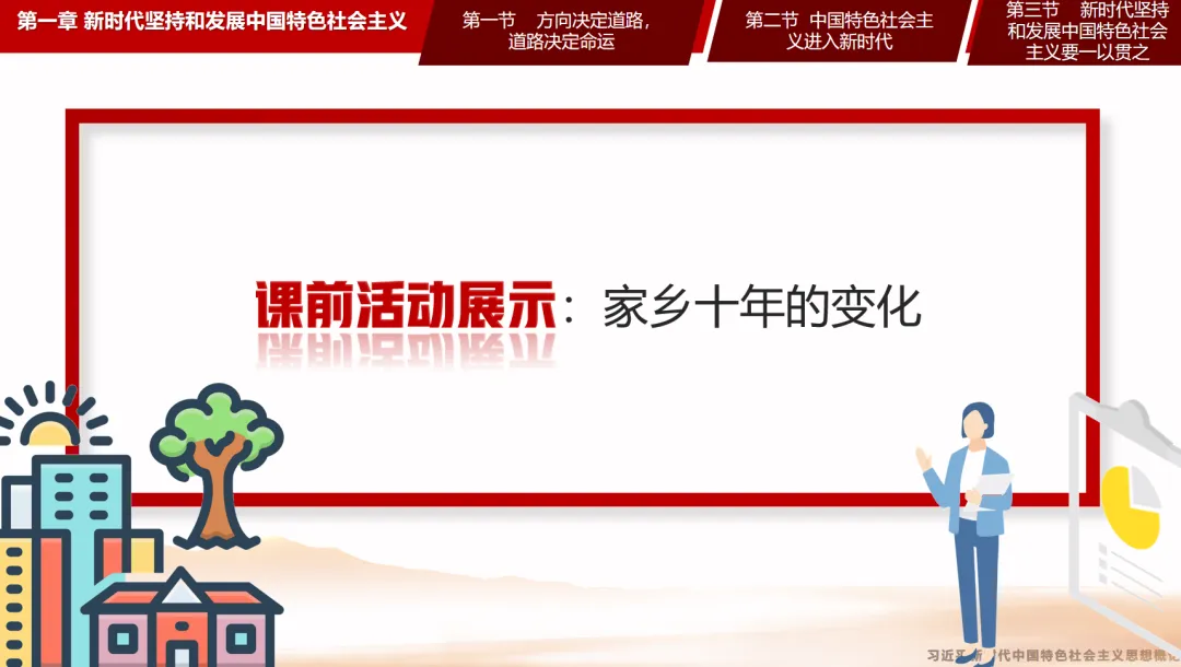 导入:课前活动展示,同学们收集各自家长近十年发生的变化,体会新时代的发展。