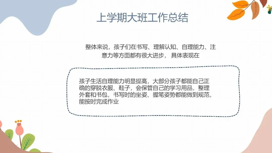 其实娃们上学期的进步真的超明显,自理能力拉满,自己穿脱衣物、整理书包都不在话下,书写坐姿和握笔姿势也越来越规范,和小伙伴相处也懂得礼貌、分享和轮流,只是个别宝贝还有点胆怯,后续家园一起锻炼娃的语言表达就好~