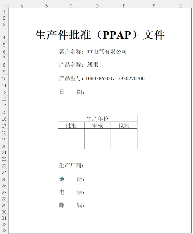 这份模板以线束产品为例,但它提供的框架和表格逻辑适用于绝大多数机械、电子部件的PPAP文件包编制。我们打开Excel文件,可以看到一张清晰的 PPAP文件目录清单,所有文件分门别类,一目了然。