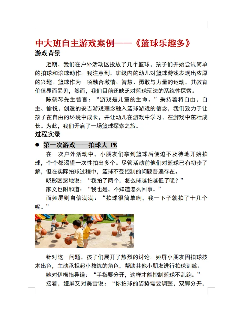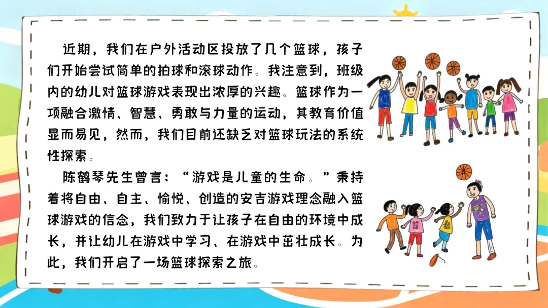 >幼儿园中大班游戏案例《篮球乐趣多》PPT+文稿