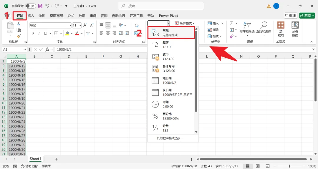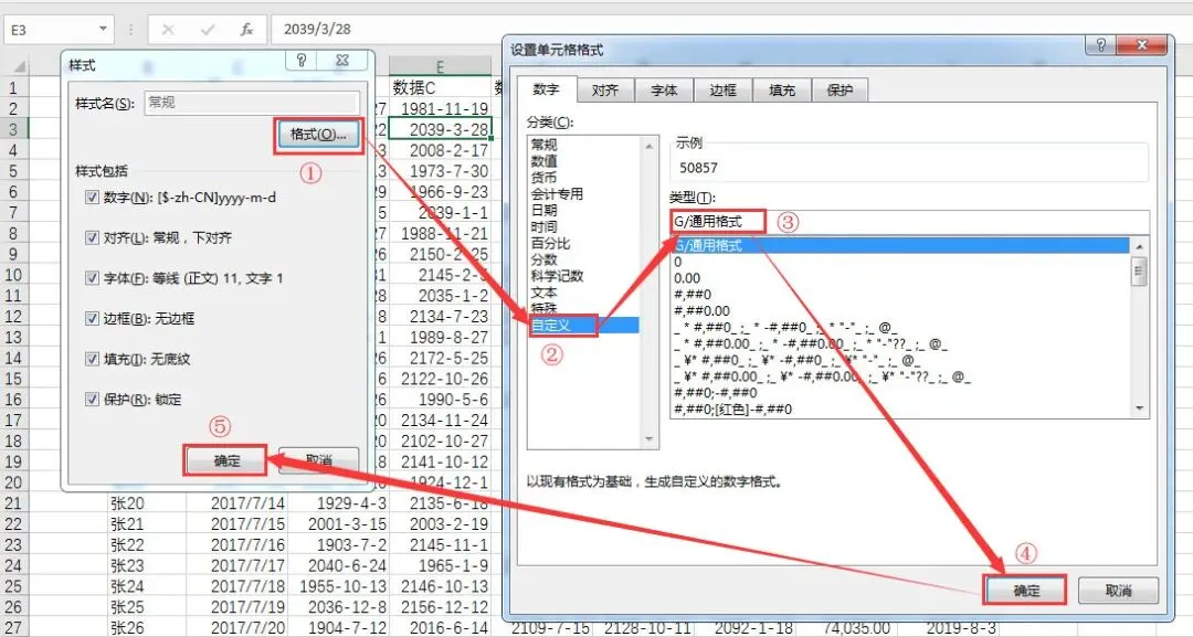 此时,选中的单元格区域中的数字会重新变回常规的数字格式,而原本设置了正确格式的列则保持原样,不受影响。
