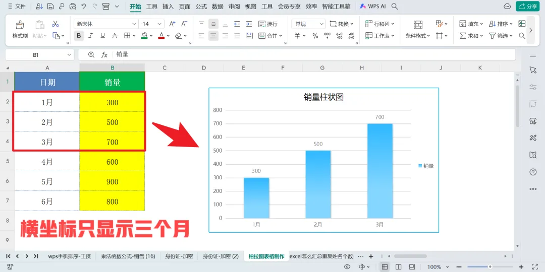 如此,柱状图的横坐标便成功调整为前三个月的销量,让图表聚焦核心数据,分析更加精准。