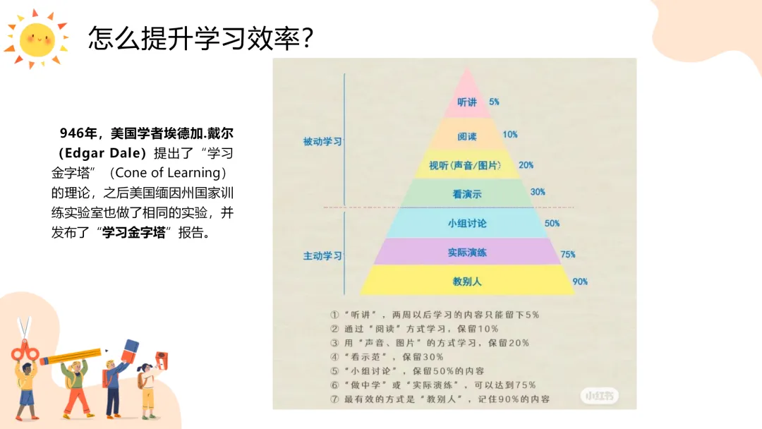 怎样提高数学的学习效益呢,这里我分享一个美国教育家埃德加.戴尔的学习金字塔。这里分为三、好习惯,伴成长