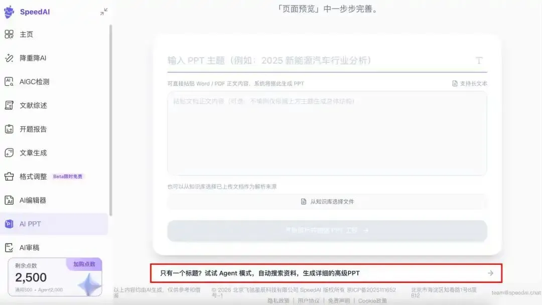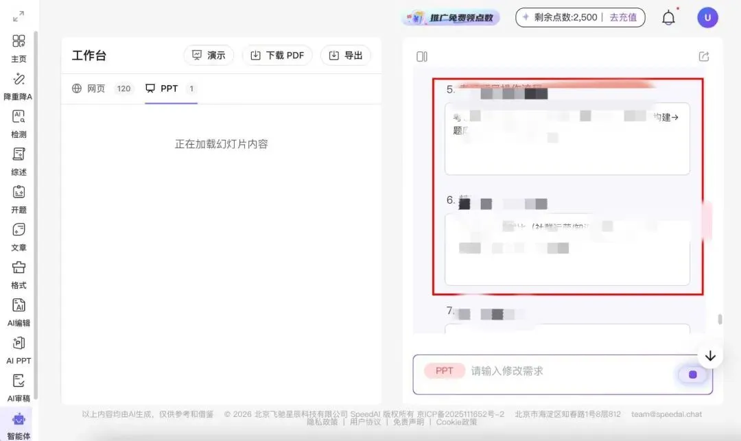 20、目前 SpeedAI 的 PPT 智能体限时免费体验,每天签到可以领 2000 点数备用。大家抓紧冲!SpeedAI 官网:https://kuaipaper.com/?i=UDZXMF