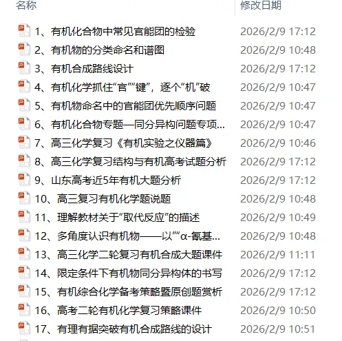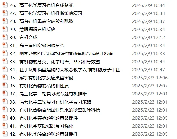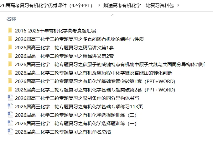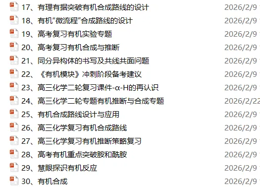 2026届二轮复习电子资料 2026届高考化学实验二轮优秀课件(50个PPT) 高考二轮反应原理优秀PPT课件集(45个PPT) 高考大题突破——工艺流程综合题知识点解读!附PDF下载! 2026届AI赋能大数据建模高考化学二轮复习用书 2026届高三化学复习选择题专练105套精美WORD,附样稿免费下载! 2026届高考选择题培优难点突破16个专题(560题)精美WORD,附样稿免费下载! 2026届福建省高三化学10道选择题专练50套word版有解析,附样稿免费下载! 理解为王化学反应原理综合题解法策略 2026届高考化学物构二轮优秀课件(40个PPT)