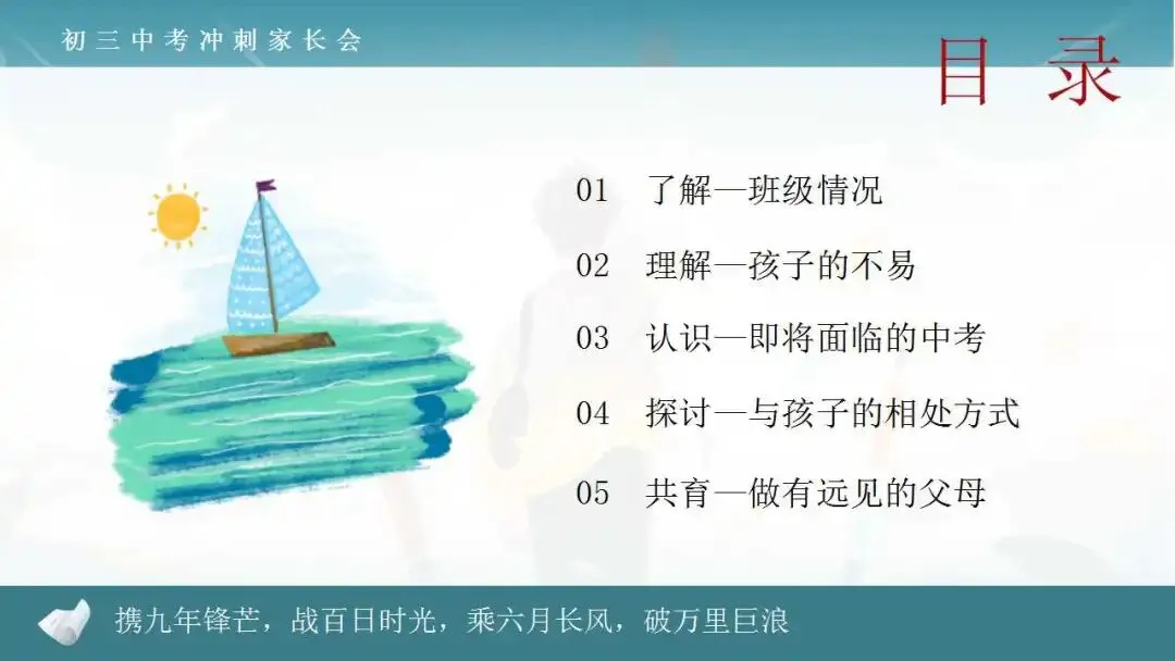 初三【九年级】春季下开学家长会ppt:扬帆砺剑,决胜中考。