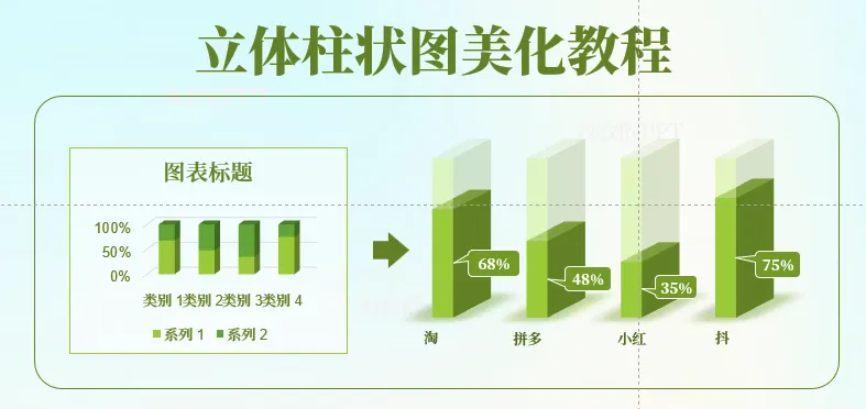 今天来分享一款比较有个性扁的立体柱状图,和普通的柱状图相比显得更有个性也更显得高级!