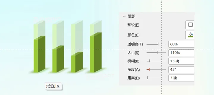 5,最后给图表添加阴影效果,选中图表下半部分添加阴影效果,具体的参数可参考下图的参数。再给图表添加上数据标签和文字就搞定啦!