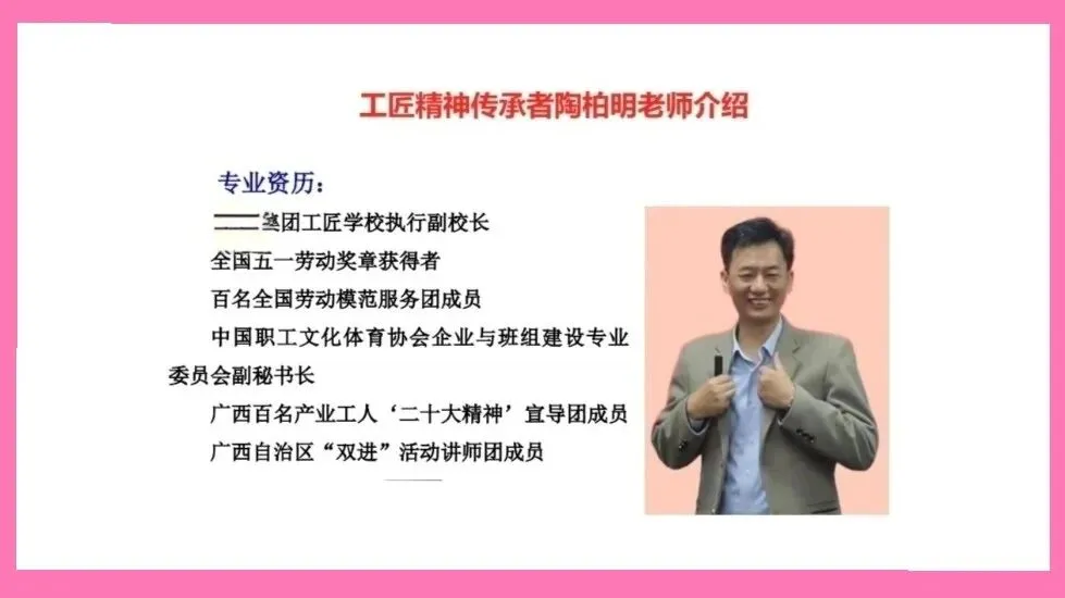 简单的说,单位岗位定身份,核心荣誉显成就,社会标签亮价值。一页干净、清晰、有重点的介绍页,既能体现劳模工匠的沉稳与专业,又能让听众快速记住你、认可你,远比密密麻麻的文字更有力量。