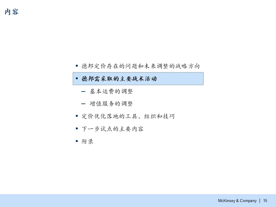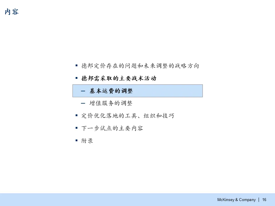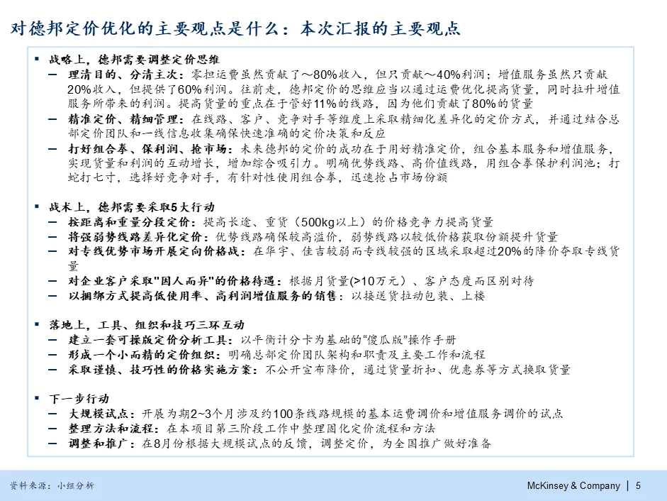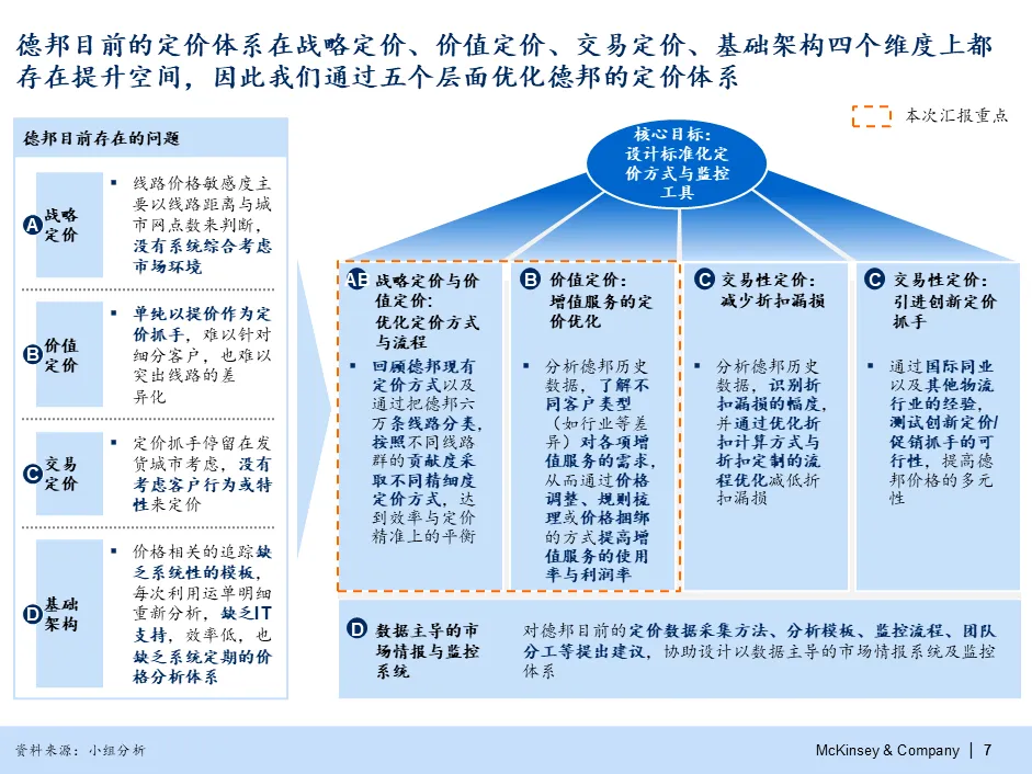 本报告聚焦德邦物流定价体系优化项目,通过麦肯锡公司主导的四阶段工作框架,系统性解决传统定价模式存在的效率低下、成本控制薄弱等问题。