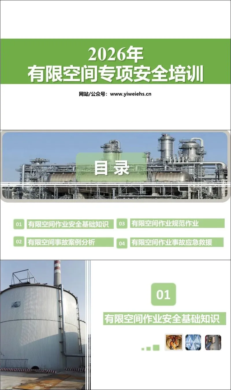 《2026年有限空间专项安全培训》旨在全面普及有限空间作业的安全知识、规范操作流程及应急救援措施。文档共分为四个主要部分: