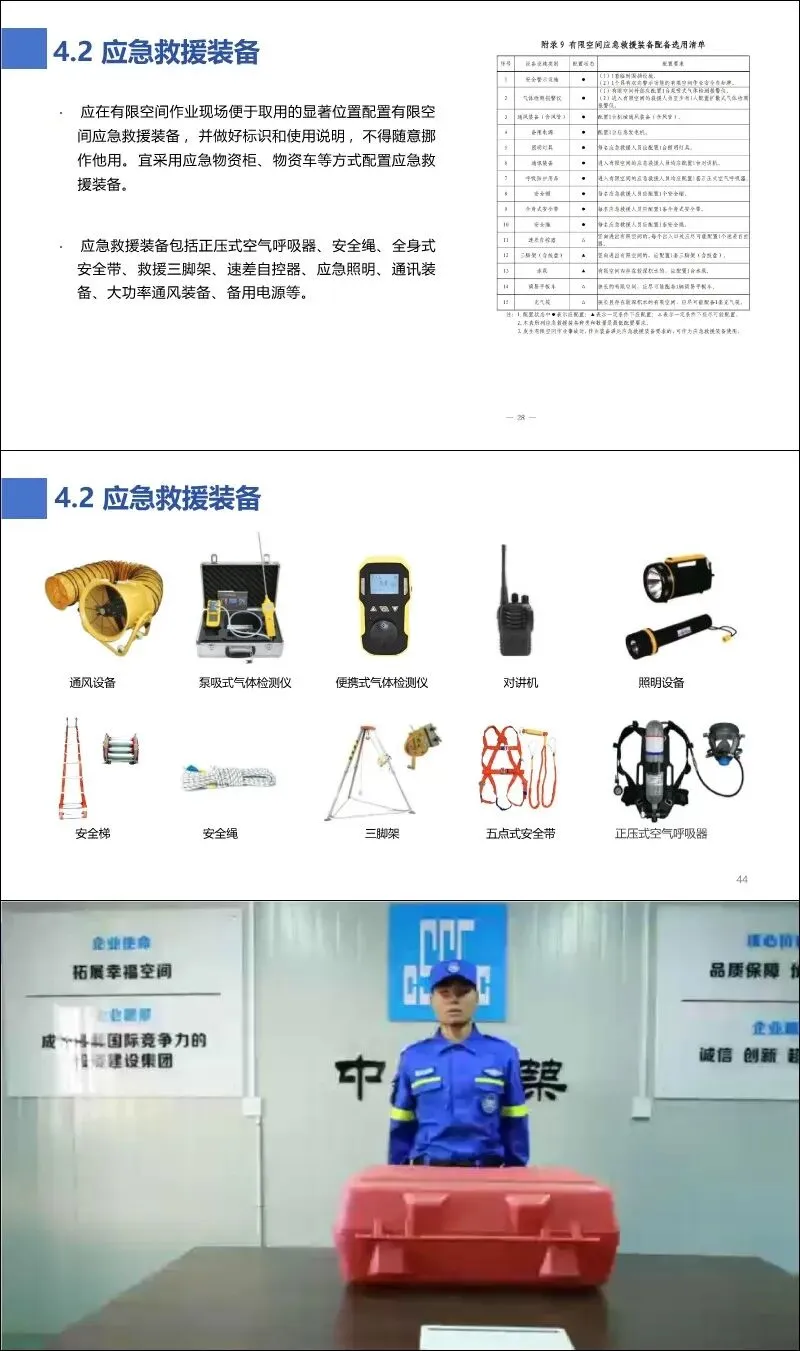 装备配置: 现场需配置正压式空气呼吸器、安全绳、三脚架、通讯设备等应急救援装备。