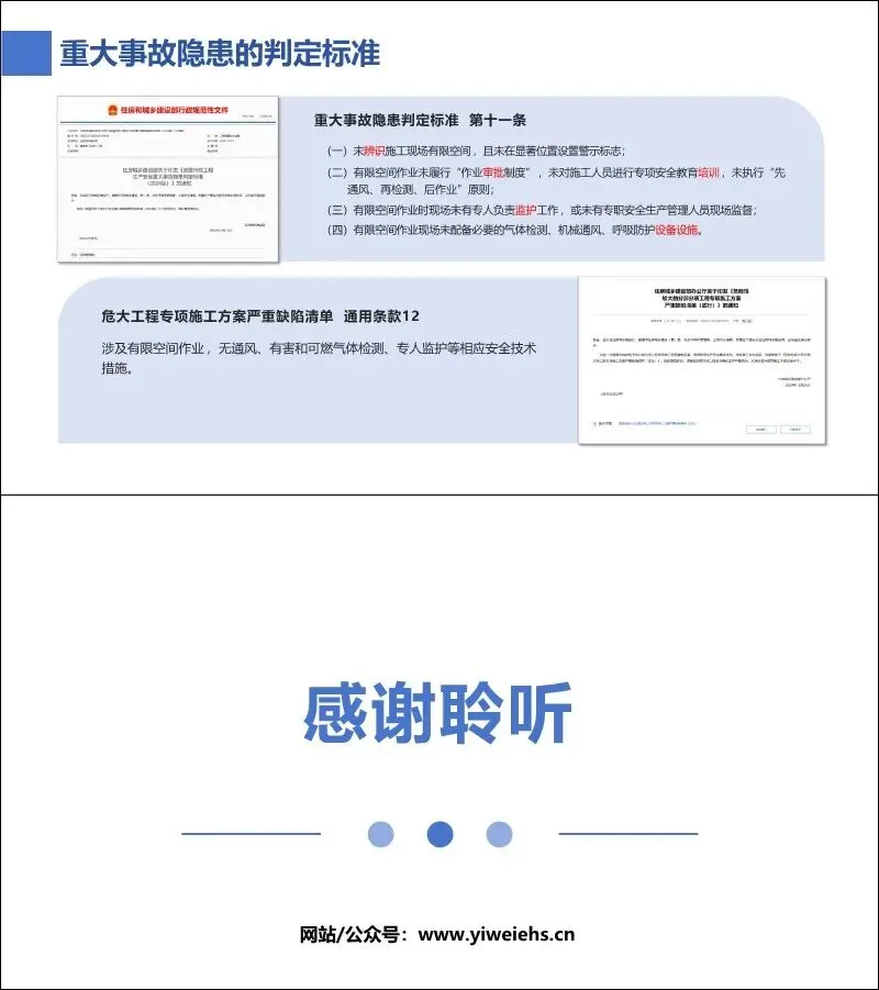 重大事故隐患判定: 未辨识且无警示标志、未履行审批及培训、未执行“先通风再检测后作业”、无专人监护、未配备必要设备设施等情况,均被判定为重大事故隐患。