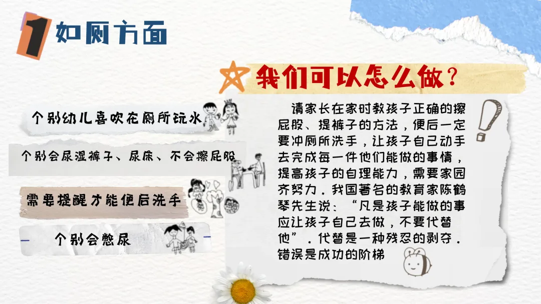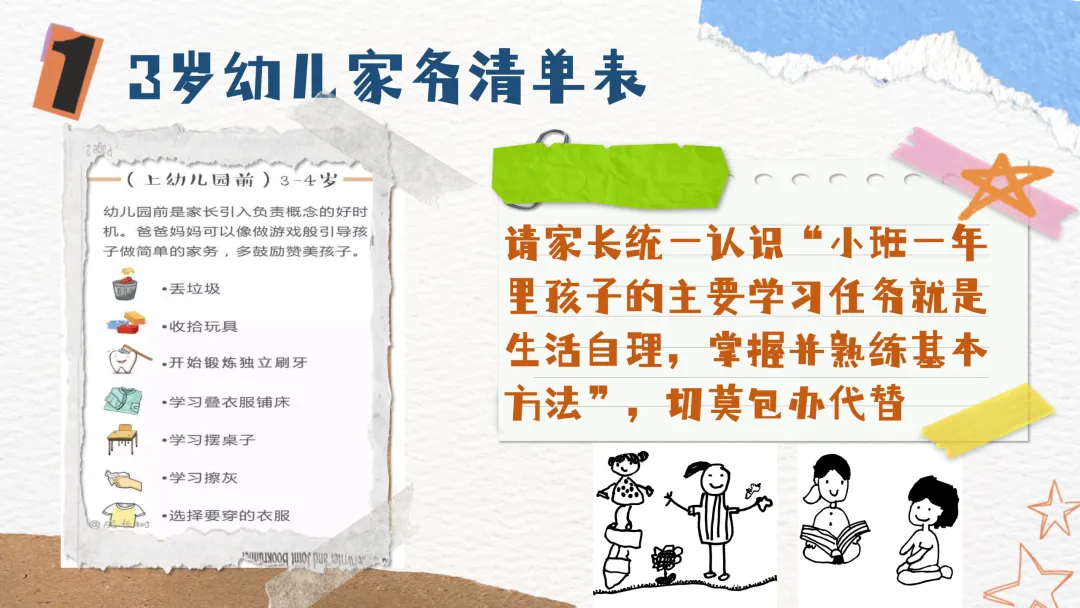 请家长统一认识“小班一年里孩子的主要学习任务就是生活自理,掌握并熟练基本方法”,切莫包办代替.......。