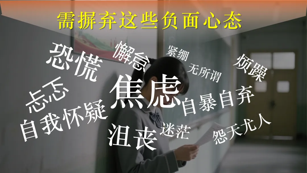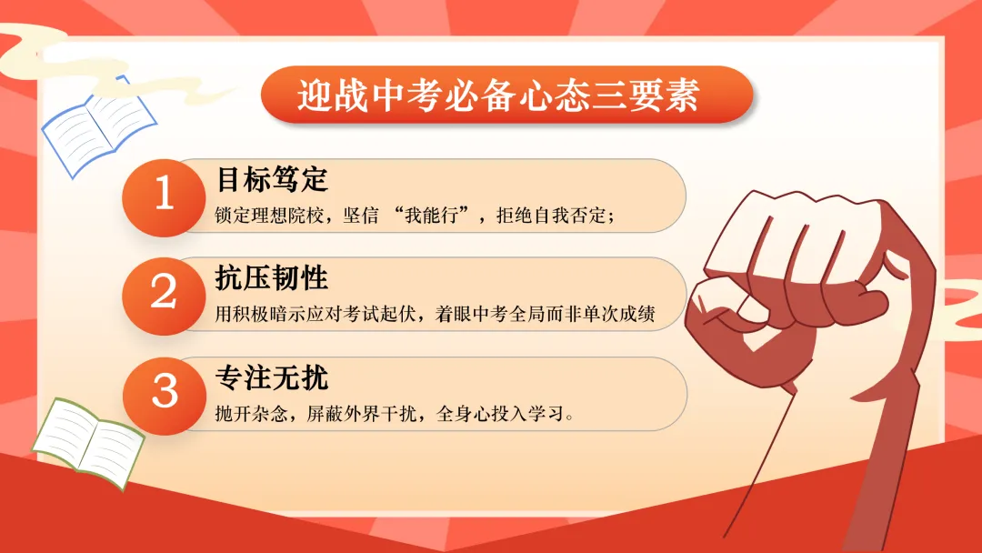 老师:迎战中考,我们需要具备以下三个心态要素: