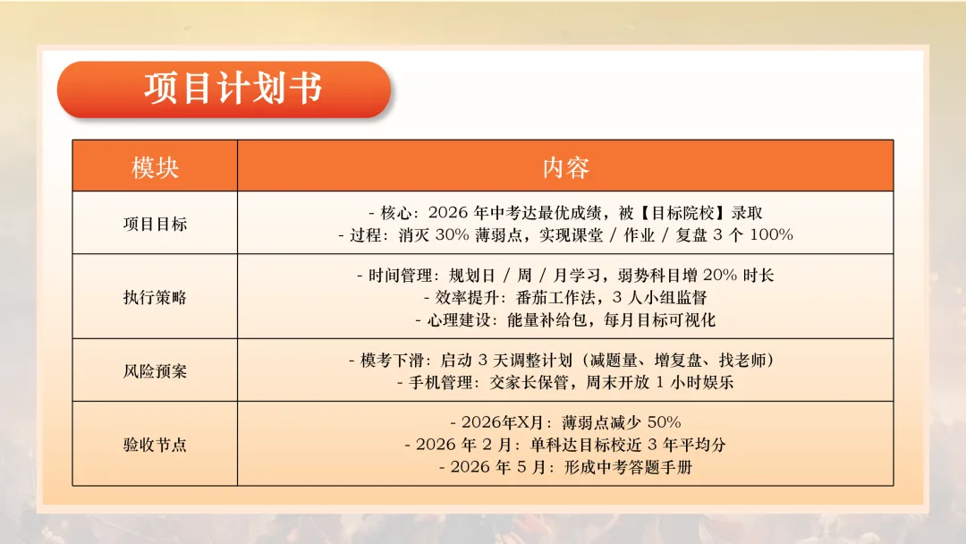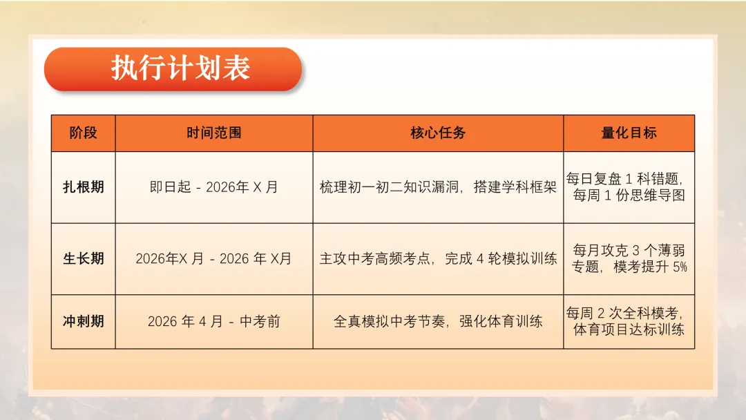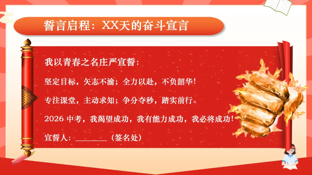 老师:同学们,我们先来思考一个问题:2026年中考,离我们还有多远?可能大家觉得,还有大半年的时间,似乎很漫长。但当我们把时间细化,你会发现,留给我们的时间其实非常有限。