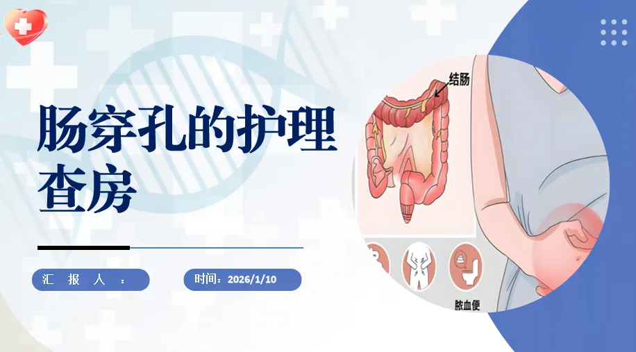 各位同仁,今天我们围绕肠穿孔开展护理查房,一起梳理肠穿孔的护理要点、复盘临床病例、总结实操经验。肠穿孔是肠道疾病的严重并发症,发病急、病情重,易引发弥漫性腹膜炎甚至休克,护理工作的每一个细节都关乎患者的病情控制与康复,这次查房就是把护理中的重点、难点捋清楚,让大家后续面对这类患者时,护理工作做得更扎实、更精准。