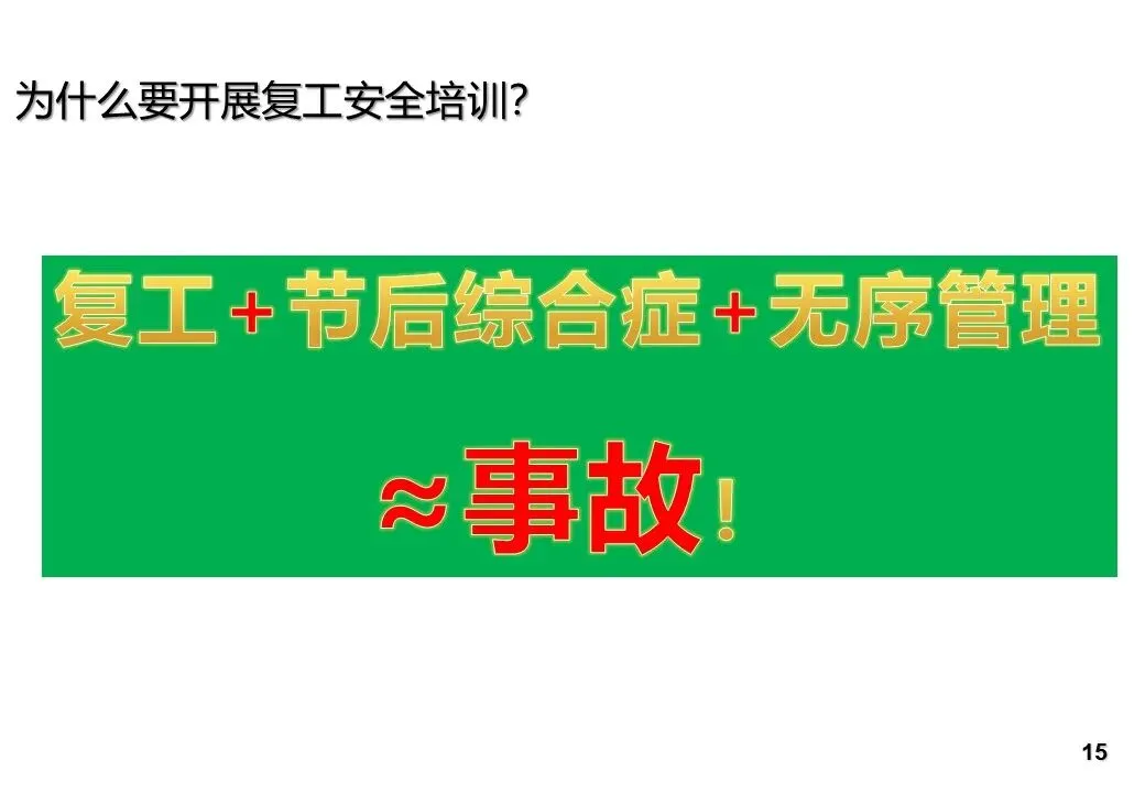 当前位置:首页>PPT>PPT ‖ 节后复工系列【第5套】07-春节节后复工安全教育培训(56页)