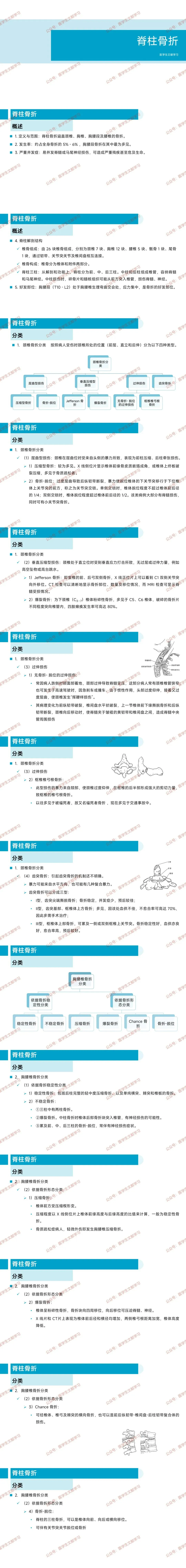 定义与范围:脊柱骨折涵盖颈椎、胸椎、胸腰段及腰椎的骨折。